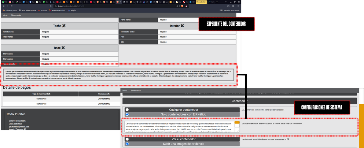 Escriba el texto que aparece cuando el cliente entra a ver un contenedor.